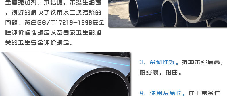 ⑦、良好的可繞性:管道柔性好,可適度彎曲,抗不均勻沉降效果好。